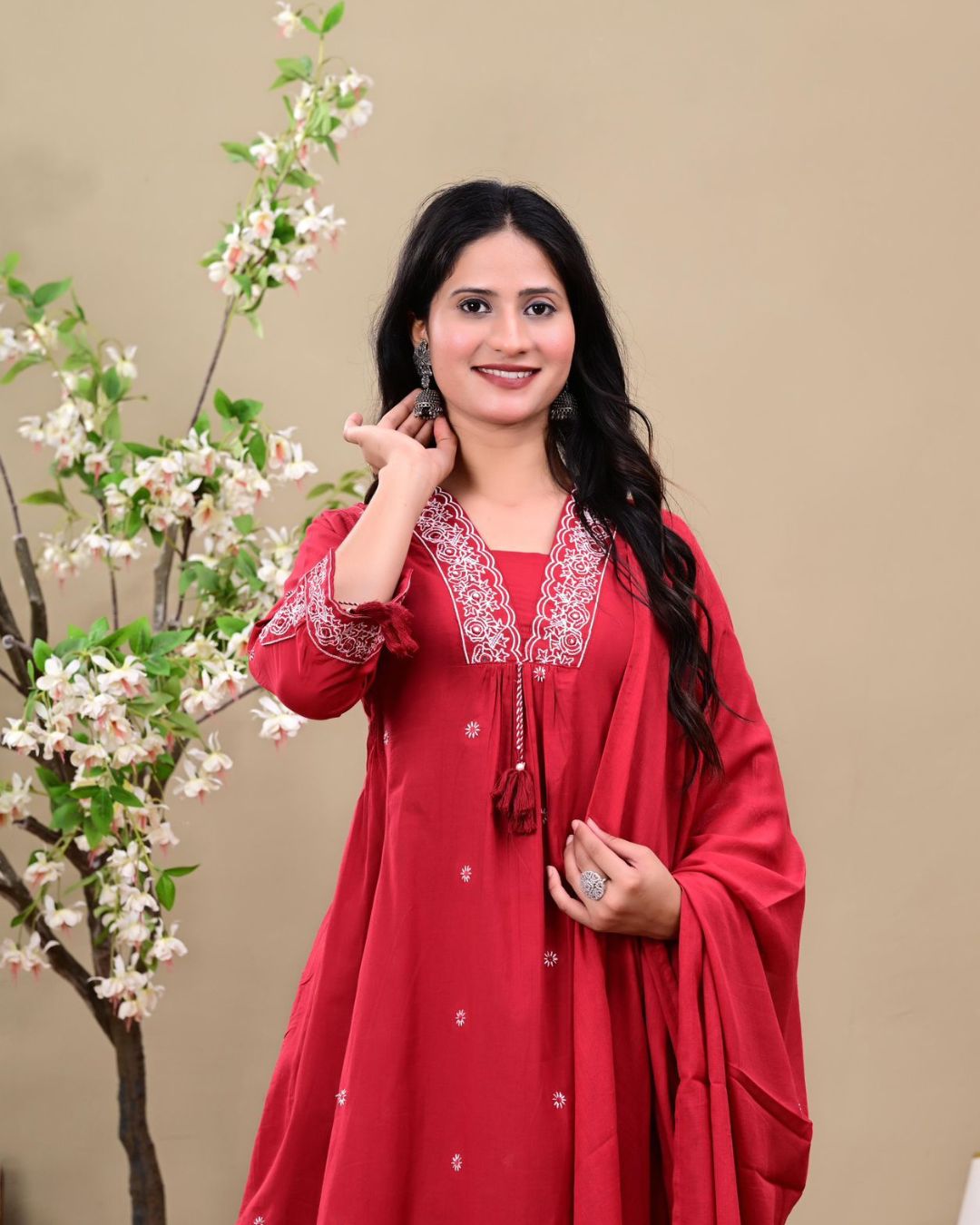 Wine Red Embroidered Kurta Set with Dupatta
